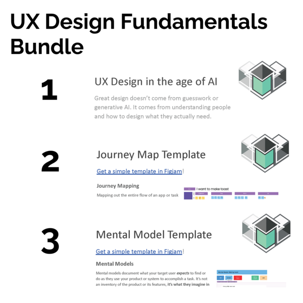 Master UX fundamentals that make AI outputs better, not just faster. A clear, visual, and practical guide to real UX thinking: personas, journey maps, content clarity, and strategy; designed for creatives, freelancers, and teams who want to stay human-centered in an AI-driven world.
