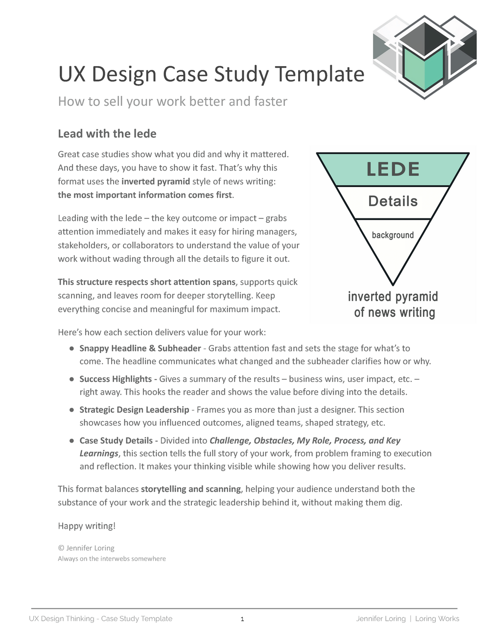 - A ready-to-use case study structure based on the inverted pyramid (news writing style)